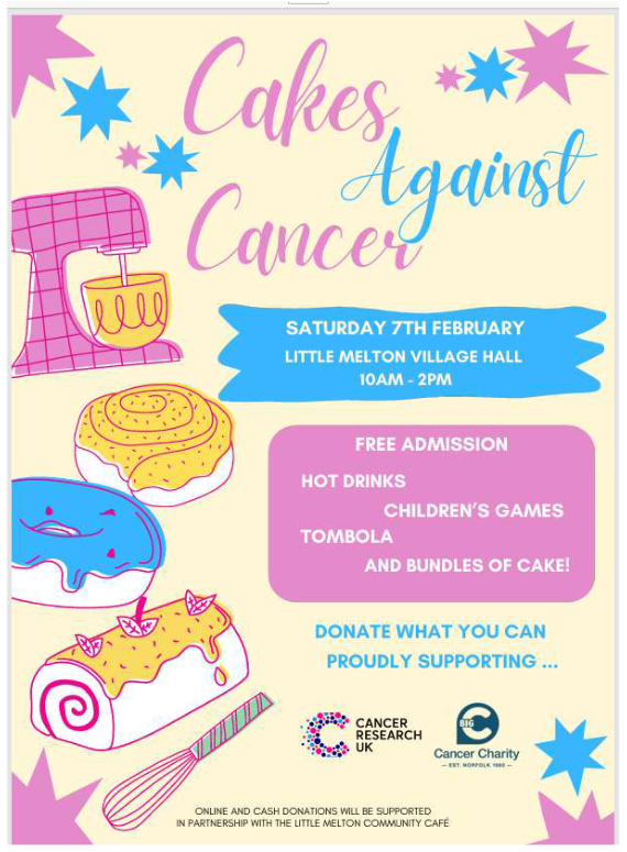 A Coffee Morning in aid of Great Melton Church is being held on Friday 6th February from 10 am until midday in Great Melton Cricket Pavilion. There will be a raffle and bring and buy sale and a chance to get together and meet the new rector, Rev. Canon Damon Rogers.