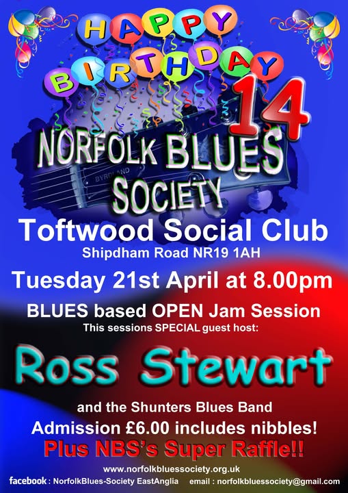 Tuesday the 21st of April is the Norfolk Blues Society's 14th Birthday! Wow, where have all the years gone? So come on out to Toftwood SC, bring your instrument and help us celebrate, with our party/blues jam and our very special guest host, Ross Stewart! If you haven't seen Ross before, you're in for a treat.... well, you're in for another treat if you have seen Ross before! Good blues, good beer, good food and best of all, great company! […]