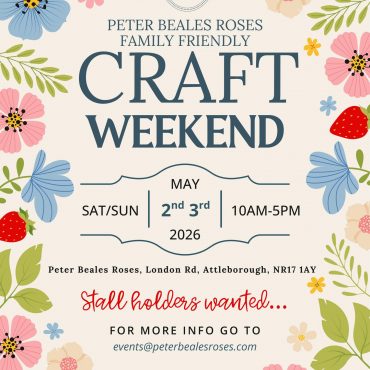We have a handful of remaining spaces available for our family-friendly May Craft Weekend, taking place Saturday 2nd & Sunday 3rd May. To apply, please email events@peterbealesroses.com with details about your work. We can’t wait to welcome a wonderful community of makers for a weekend of creativity, shopping and springtime inspiration.