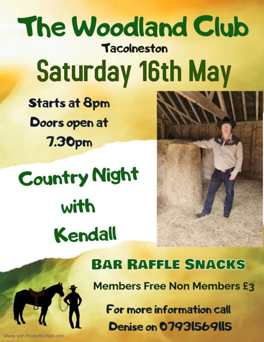 Country Night Saturday May 16th The Woodland Club, Tacolneston, NR16 1DNMembers FREE - Non members £3Everyone Welcone Please tell all your friends!