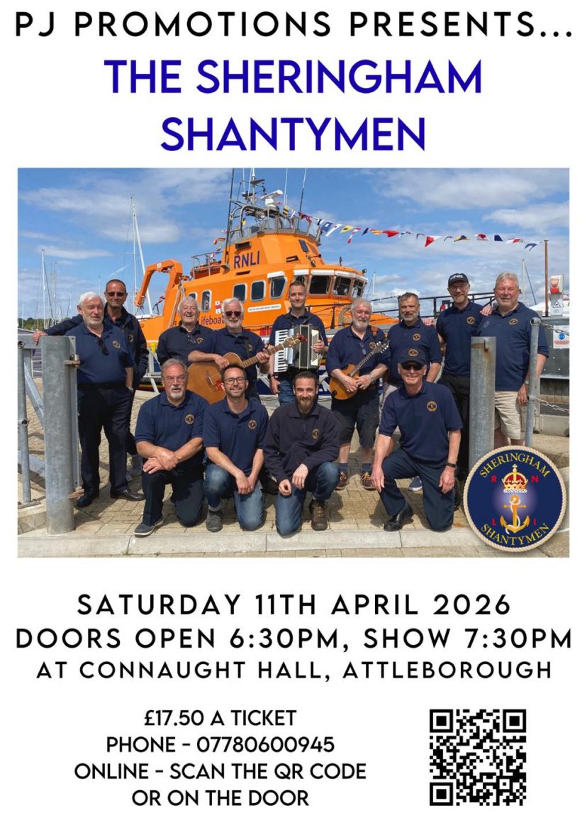 SET SAIL FOR A NIGHT OF SEA SHANTIES! PJ Promotions proudly presents The Sheringham Shantymen – one of Norfolk’s most beloved and iconic singing groups! Join us for an evening filled with traditional shanties, great humour, and fantastic harmonies that will have you clapping and singing along. Saturday 11th April 2026 Connaught Hall, Attleborough Doors open 6:30pm | Show starts 7:30pm Tickets: £17.50 Book now at www.connaughthall.com/tickets You can also […]